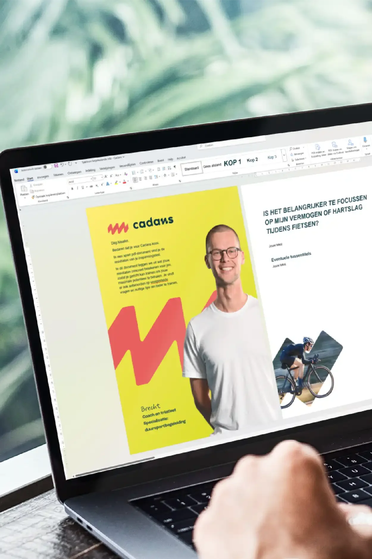 De huisstijl werd ook in social media templates en Word sjablonen gegoten, zodat Cadans ook in hun sociale media en documenten ‘on brand’ communiceert. Zo blijft hun communicatie consistent, samenhangend en helemaal afgestemd op hun eigen energieke identiteit.