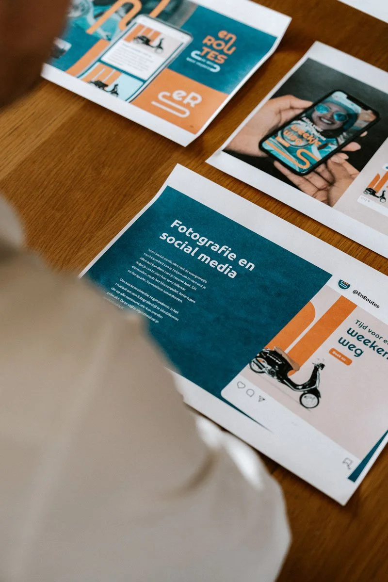 Brand assets: Terugkerende brand assets zoals kleurrijke lijnen - geïnspireerd op de bochten in de Ardennen – helpen om merkherkenning op te bouwen in hun marketingcommunicatie en om een blijvende indruk na te laten. Door deze lijnen te gebruiken in elke marketingcommunicatie, creëert En Routes merkherkenning en fun merk associaties, waardoor mensen hun merk gemakkelijk herkennen en onthouden.